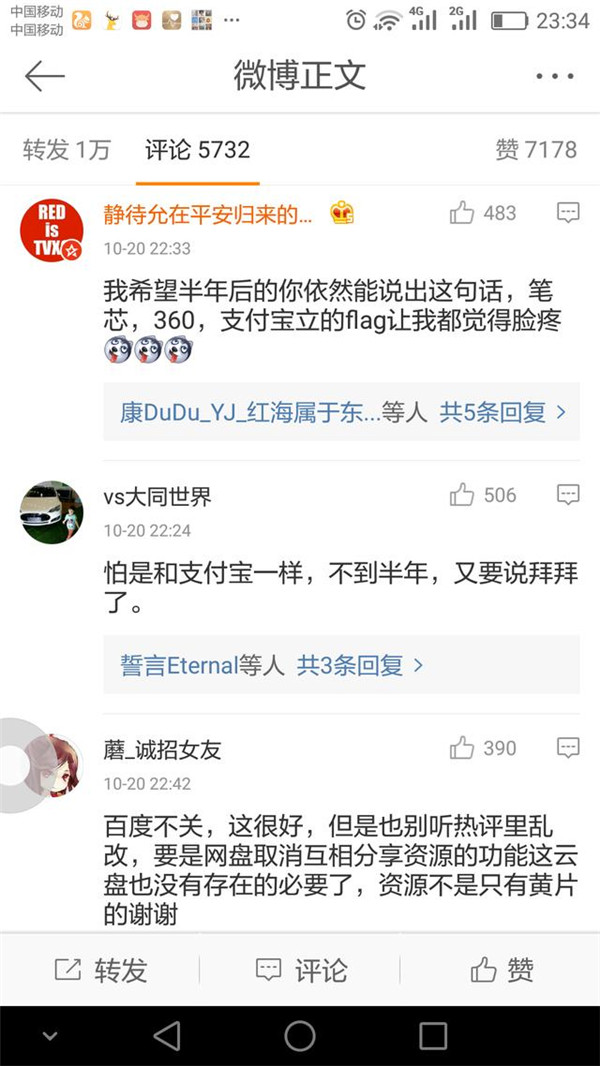虽然目前百度云盘已经发出声明,但并没有赢网友们的叫好,甚至有很多网友质疑其真实性。有网友表示要截图留日后打脸!